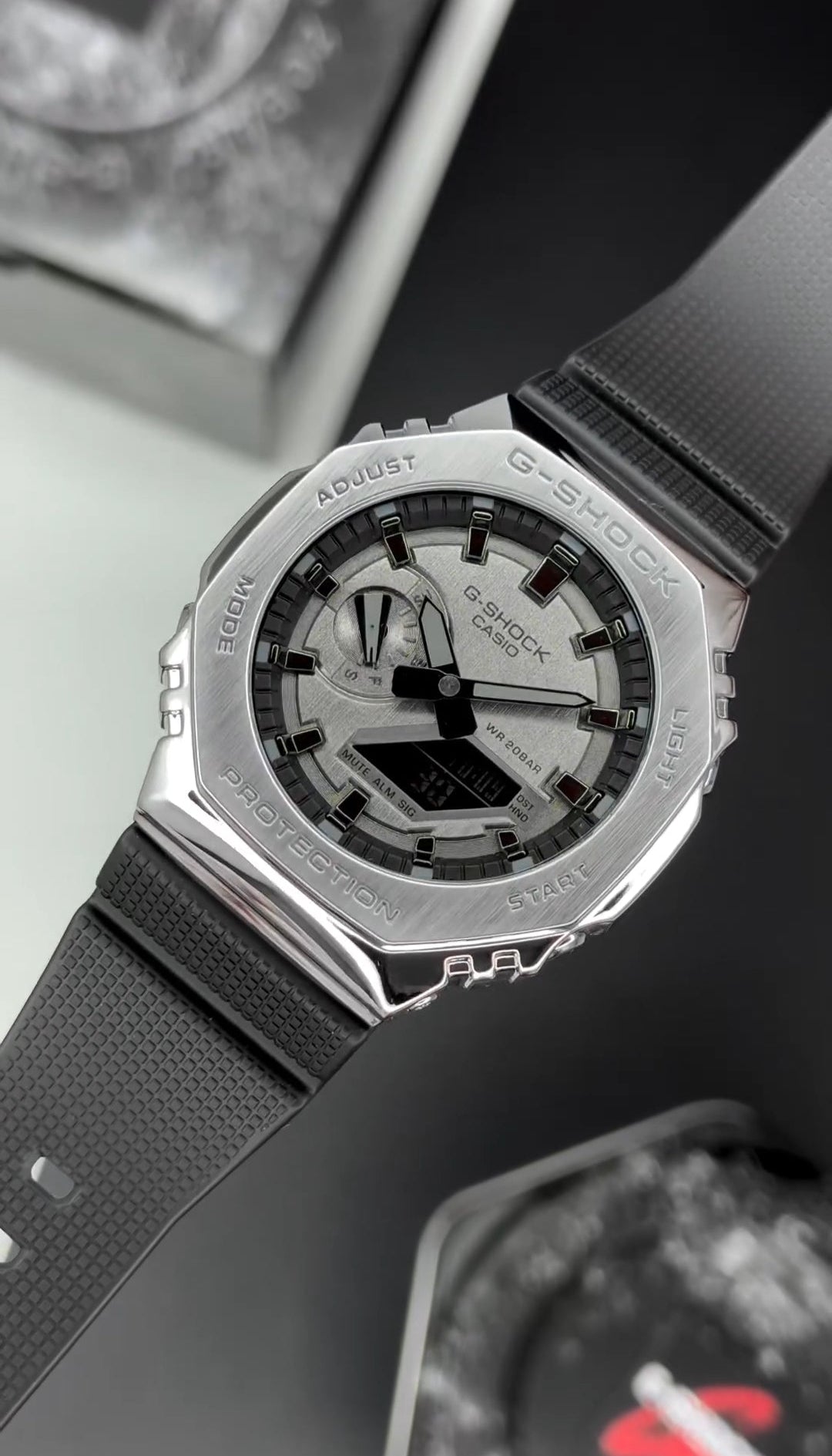 G-Shock GM2100 with silver metal body.